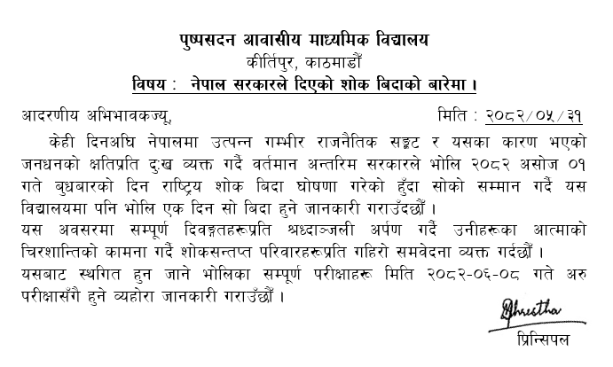Date: 11 September 2025 Dear Parents and Students, In light of the ong...